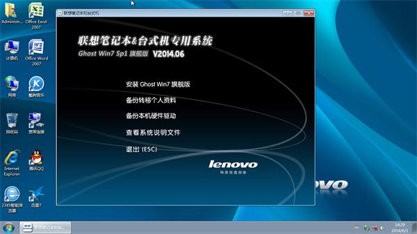 联想笔记本&台式机专用系统 Ghost Win7 Sp1 旗舰版 v2014.06