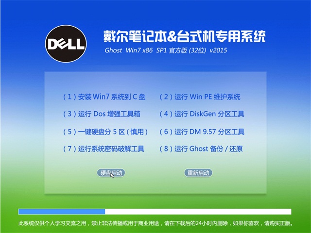 戴尔(dell)专用系统 GHOST WIN7 SP1 X86 旗舰装机版 v2015.06