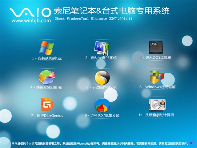 索尼电脑 GHOST WIN7 SP1 X86 旗舰特别版 V2014.11(32位)