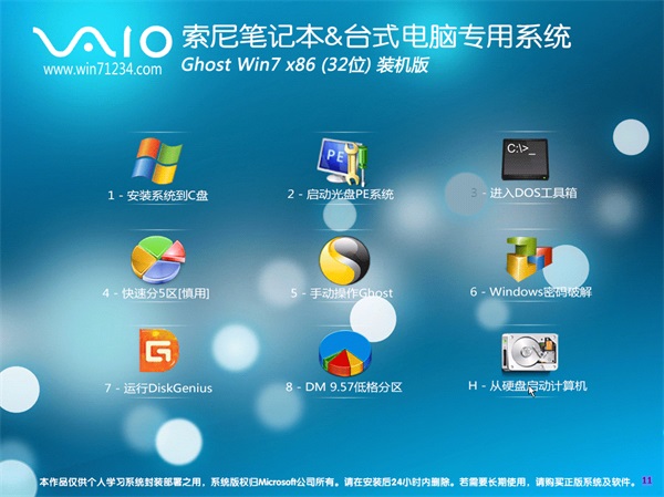 索尼笔记本 GHOST WIN7 32位 装机版 2016.06