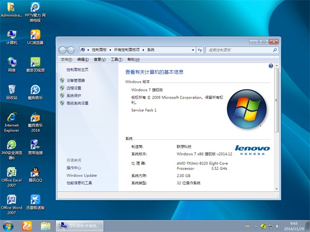 联想笔记本&台式机专用系统 Ghost Win7 Sp1 旗舰版 v2014.12