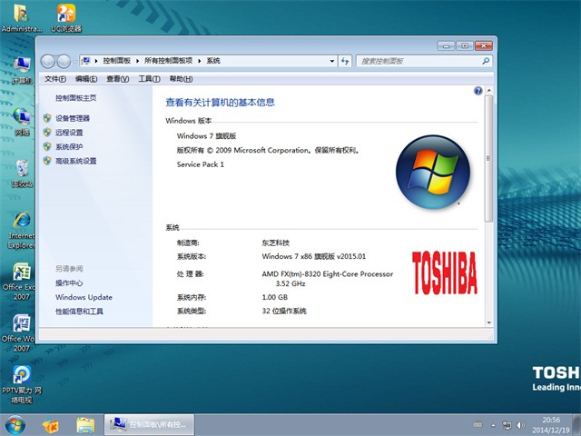 东芝电脑_Ghost_Win7 Sp1_ (x86 自动激活) 旗舰装机版 2015.01