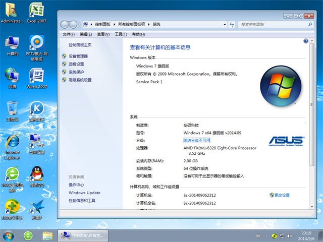 *** 华硕笔记本&台式机专用系统 Ghost Win7 64位 旗舰版 v2014.09 ***