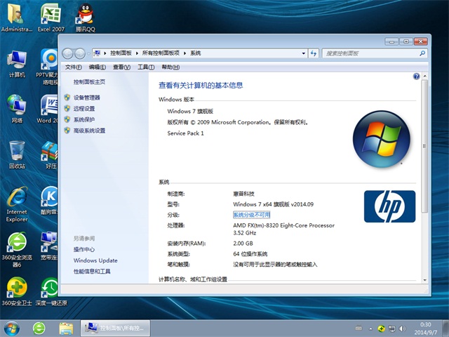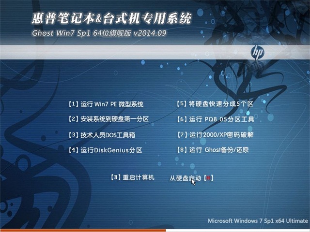 惠普笔记本&台式机专用系统 Ghost Win7 Sp1 64位旗舰版 v2014.09