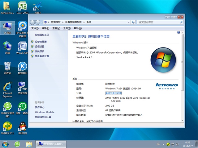联想笔记本&台式机专用系统 Ghost Win7 Sp1 64位旗舰版 v2014.09