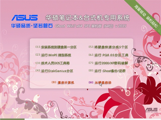 华硕 GHOST WIN7 SP1 X64 旗舰版 V2015.08(64位)