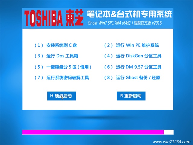 东芝笔记本 GHOST WIN7 SP1 X64 旗舰版 V2016