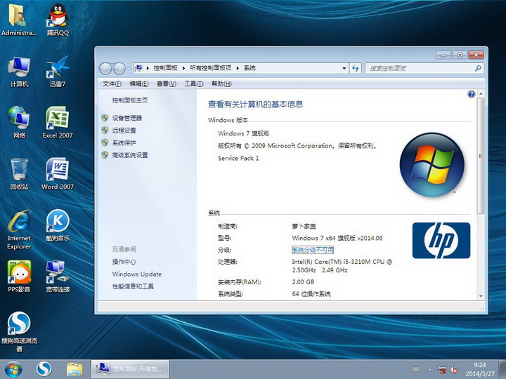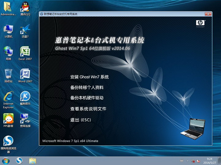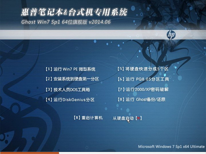 惠普笔记本&台式机专用系统 Ghost Win7 Sp1 64位旗舰版 v2014.06