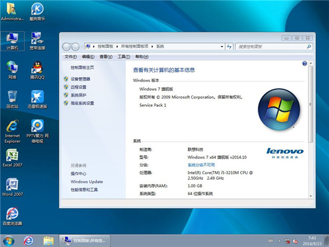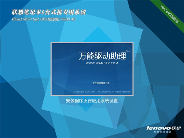 联想笔记本&台式机专用系统 Ghost Win7 Sp1 64位旗舰版 v2014.10