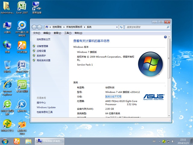 *** 华硕笔记本&台式机专用系统 Ghost Win7 64位 旗舰版 v2014.12 ***