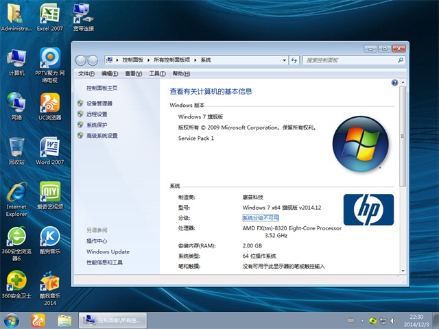 惠普笔记本&台式机专用系统 Ghost Win7 Sp1 64位旗舰版 v2014.12