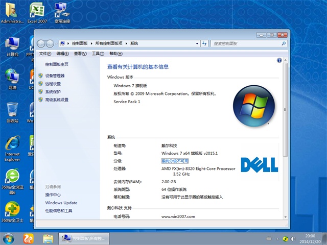 戴尔电脑专用系统 GHOST WIN7 SP1 X64 装机优化版 2015.01