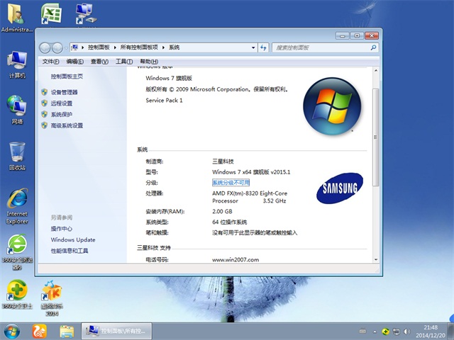 三星电脑专用系统 GHOST WIN7 SP1 X64 装机旗舰版 2015.01