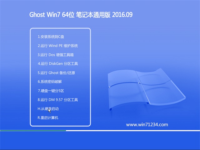 GHOST WIN7 64位 笔记本通用版 V2016.09