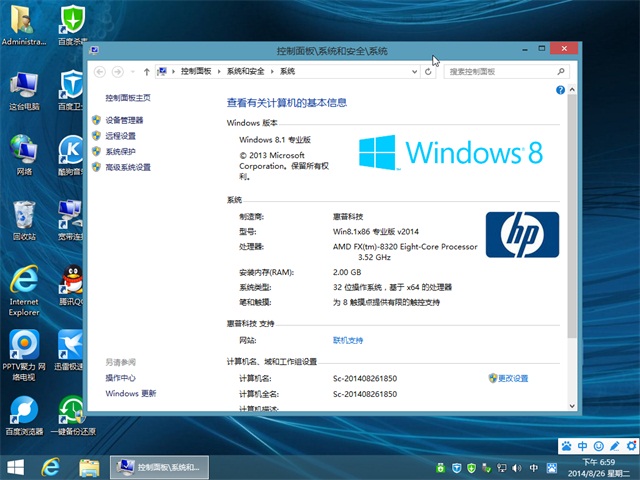 惠普笔记本&台式机专用系统 Ghost Win8.1 x86 专业快速装机版 v2014