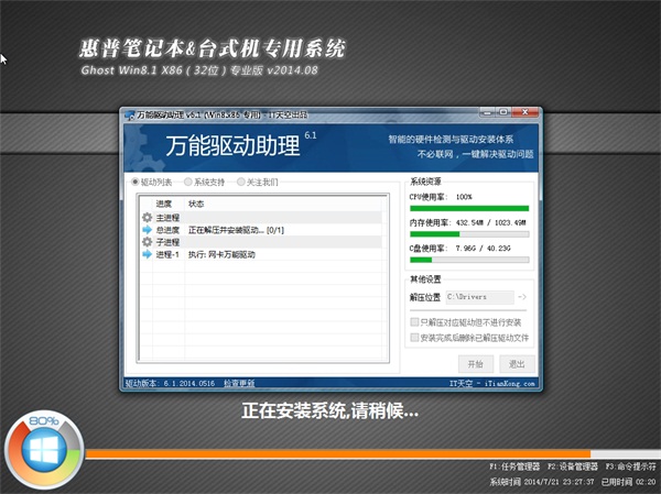 惠普笔记本&台式机专用系统 Ghost Win8.1 X86 专业版 v2014.08