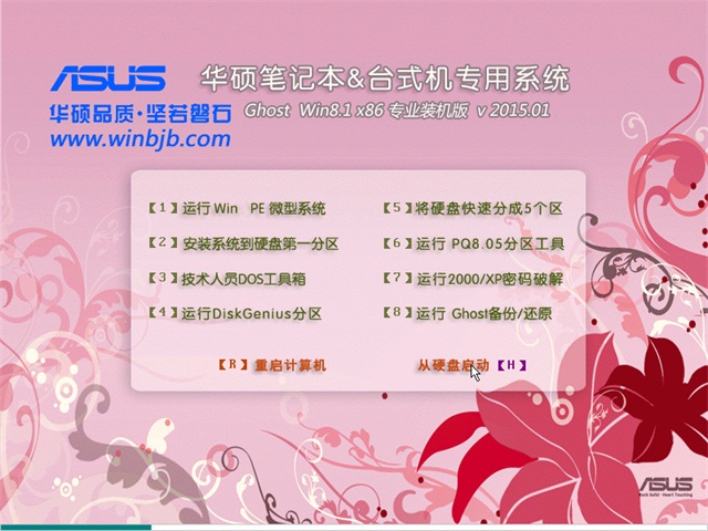 华硕笔记本&台式机专用系统 Ghost Win8.1 X86 专业装机版 v2015.01结合全新的系统优化,采用最专业化核心技术研发成果。保卫系统安全,快速高效安装速度。拥有稳定安全的系统保障,方便快捷全程一键自动化安装。满足不同人群的需求,做到最人性化的设计。是安装系统最优选择,该系统经过严格把关、检验、试验无数次确定安全稳定发布使用。欢迎大家选择安装!