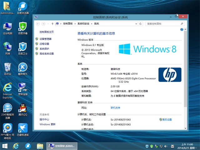 惠普笔记本&台式机专用系统 Ghost Win8.1 X64 专业快速装机版 v2014