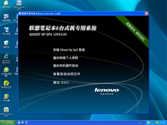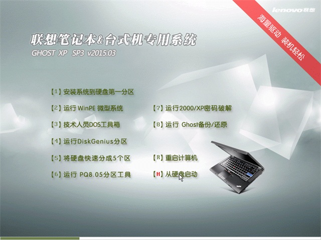 联想笔记本&台式机专用系统 GHOSTXPSP3 v2015.03 海量驱动DVD版