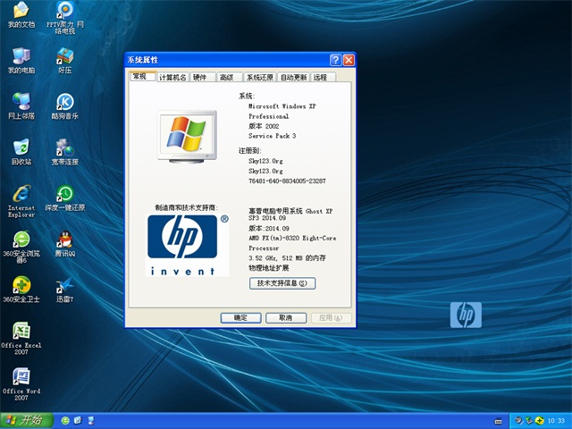 惠普笔记本&台式机专用系统 GHOSTXPSP3 v2014.09 海驱版