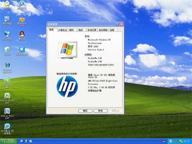 惠普笔记本 GHOST XP SP3 官方装机版 V2015.08