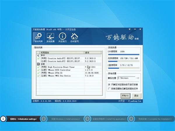 2.集成了市面上数百种常见硬件驱动,经过作者精心测试,几乎所有驱动能自动识别并安装好。