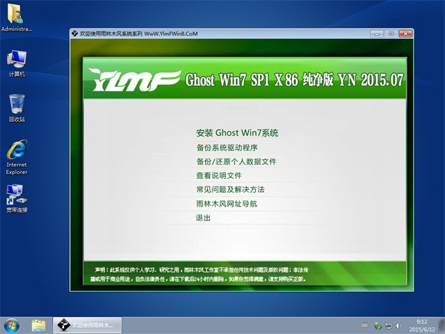 雨林木风 Ghost Win7 SP1 x86 纯净版 2015.07