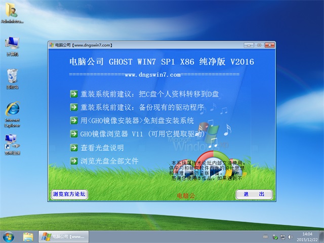 电脑公司 Ghost Win7 32位 纯净版 v2016