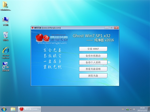 番茄花园 Ghost Win7 32位 纯净版 v2016