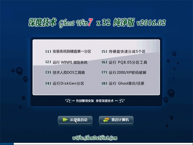 深度技术 GHOST WIN7 SP1 X86 纯净版 V2016.02(32位)