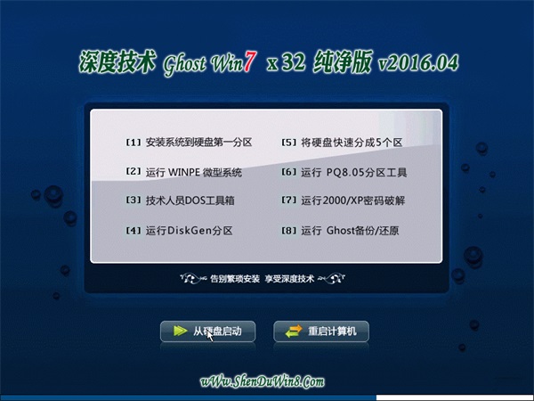 深度技术 Ghost Win7 SP1 32位 纯净版 V2016.04