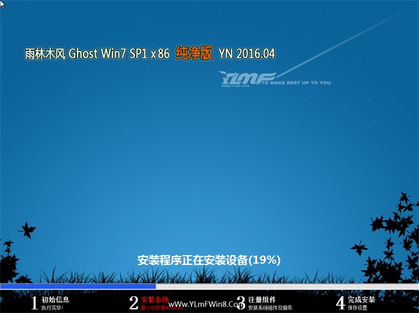* 雨林木风32位纯净版使用微软正式发布的WIN7旗舰X86 SP1简体中文版制作,无人值守自动安装,无需输入序列号。