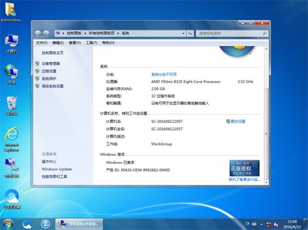 Ghost Win7 SP1 32位 纯净版 2016.06