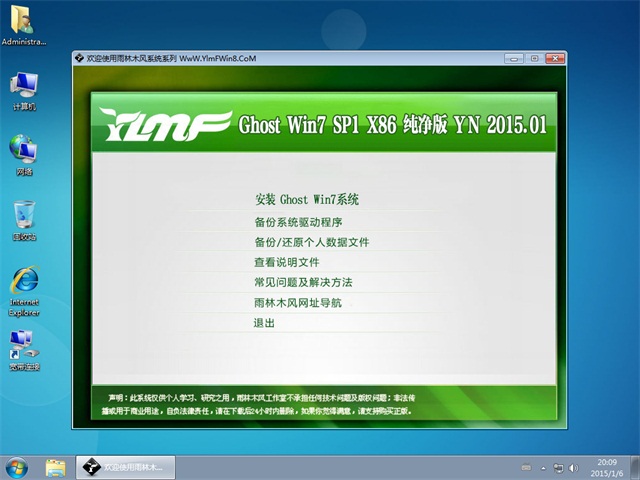 雨林木风 Ghost Win7 SP1 x86 纯净版 2015.01
