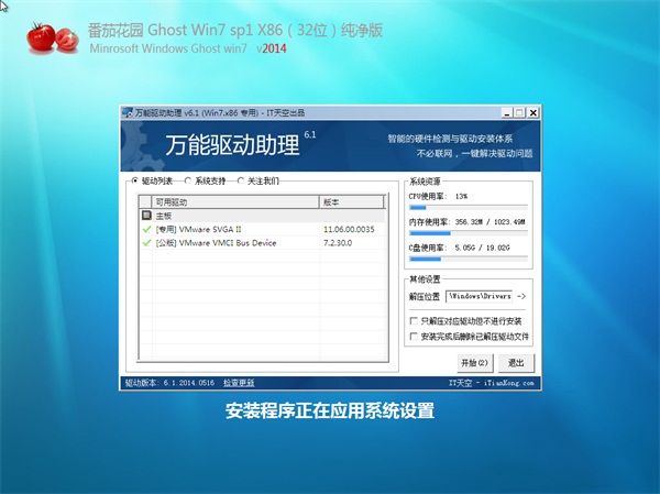 * 安装过程会运行驱动选择工具,此工具可智能判断所有的电脑硬件型号,最大限度地避免了因驱动冲突而蓝屏的现象。