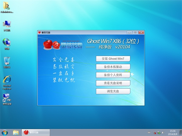 番茄花园 Ghost Win7 SP1 X86 电脑城 纯净版 v2014