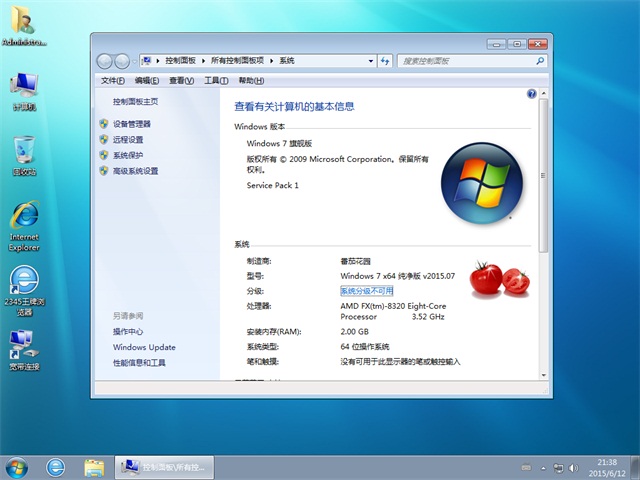番茄花园 GHOST WIN7 SP1 X64 纯净版 V2015.07(64位)