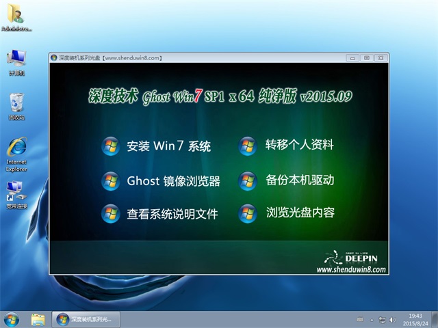 深度技术 GHOST WIN7 SP1 X64 纯净版 2015.09