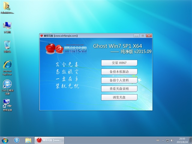 番茄花园 GHOST WIN7 SP1 X64 纯净版 2015.09