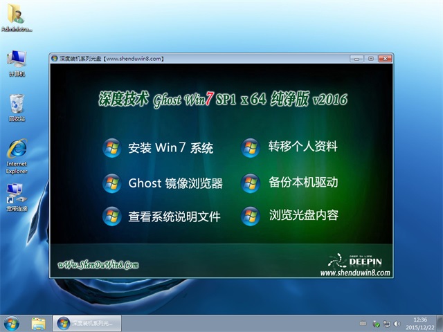 深度技术 Ghost Win7 64位 纯净版 v2016