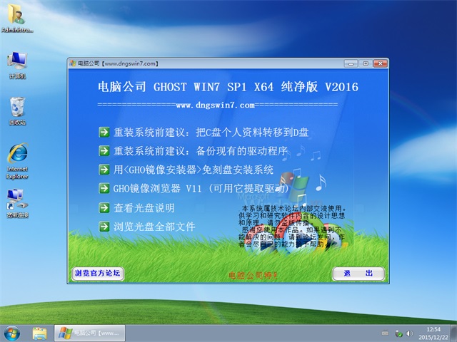 电脑公司 Ghost Win7 64位 纯净版 v2016
