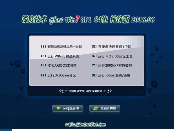 深度技术 GHOST WIN7 SP1 64位 纯净版 2016.06
