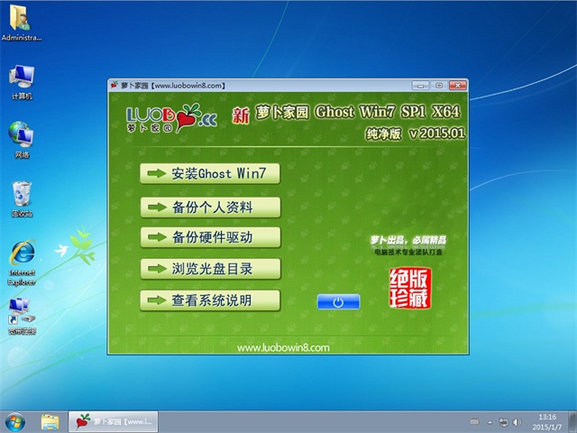 萝卜家园 Ghost Win7 64位极速装机版 v2015.01