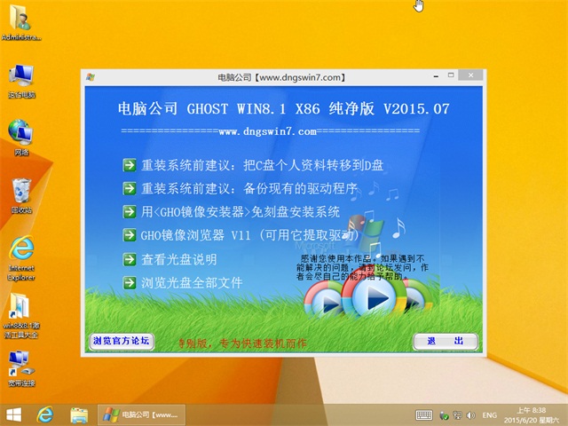 电脑公司DNGS Ghost Win8.1 X86(32位)纯净版 v2015.07