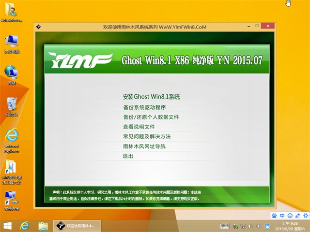 雨林木风YLMF Ghost Win8.1 X86(32位)纯净版 v2015.07