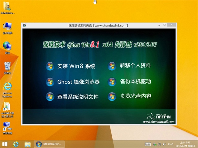 深度技术SDJS Ghost Win8.1 X64(64位)纯净版 v2015.07