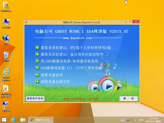 电脑公司DNGS Ghost Win8.1 X64(64位)纯净版 v2015.07