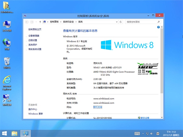 雨林木风 Ghost Win8.1 x64 纯净版 2015.01