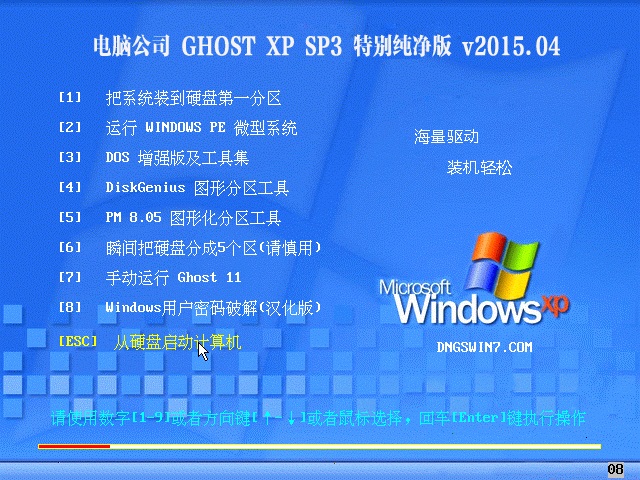* 源安装盘采用Windows XP SP3官方免激活版,集成系统补丁至2015.04。