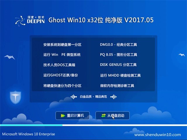 深度技术Win10x32位纯净版系统仅用于进行演示基于万能GHOST的快速部署技术,除了系统和光盘中明确标识为原创 作品的软件外,其他的全部文件归属于原版权人所有。我们不承担任何技术和版权问题,没有提供任何技术支持的义务.请勿将本系统用于商业用途。